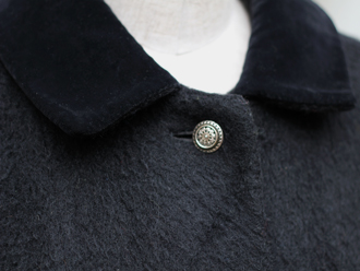 オーストリア製、ブラックのチロリアンケープです。人気のショート丈のタイプで裾にはボタンがついていて袖が通せる作りになっています。シルエットがフワッとなりとても可愛いです。